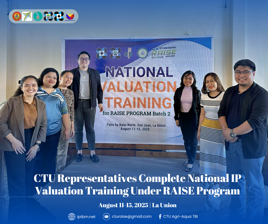 Among the graduates were Dr. Adrian P. Ybañez, Project Leader of the Regional Agri-Aqua Technology Business Incubator (ATBI) in Central Visayas, and Engr. Naomi A. Bajao, Project Staff III of CTU’s Intellectual Property and Technology Business Management (IPTBM) office. Both completed the rigorous two-part training and presented their respective IP valuation reports, demonstrating CTU’s commitment to strengthening intellectual property management and advancing agri-aqua technology commercialization in the region.